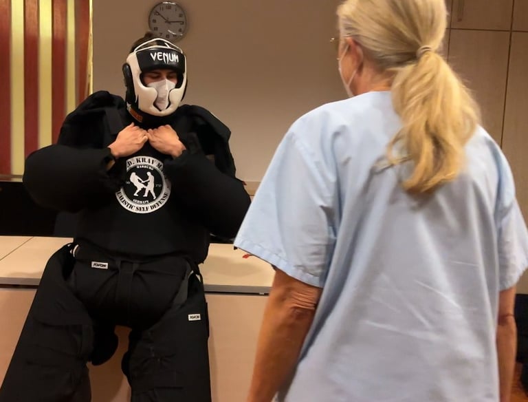 I.S.D. Krav Maga trainiert seit Jahren erfolgreich das Personal in Notaufnahmen und Empfangsbereichen von Kliniken. Unser Konzept basiert auf Gewaltfreier Kommunikation und dem professionellen Umgang mit aufgebrachten Patienten und deren Angehörigen.